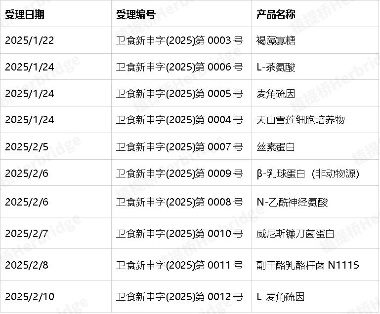 近期受理的新食品原料