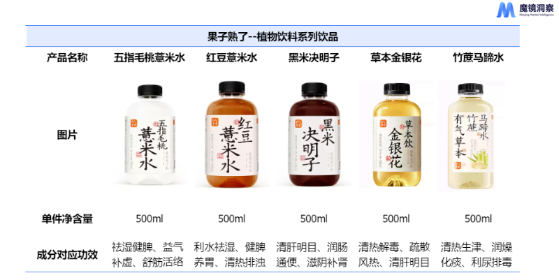 产品形态方面,以植物饮料、茶包为核心,功效聚焦“健脾养胃”。