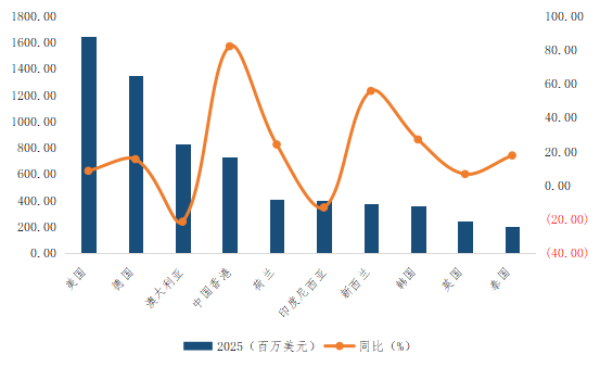 图1:2025年营养保健食品主要出口市场情况